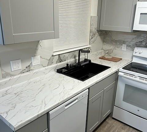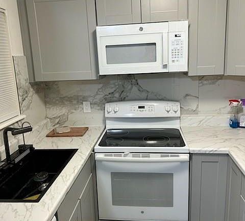 Fresh interior paintSpacious bedroomWalk-in closetNewly remodeled kitchenLaminate flooringStone wood-burning fireplace