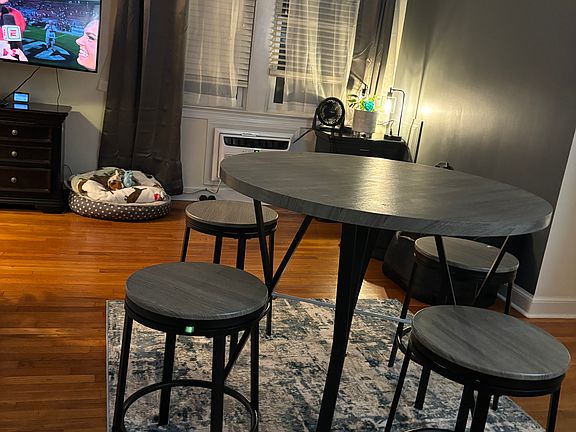 Fully furnished apartment in Old Town Alexandria with newly installed Murphy bed with a new mattress, new sofa, dining table, new dishes, and a 65-inch smart TV. Huge walk-in closet with a dresser. Plenty of storage, and ample kitchen space.