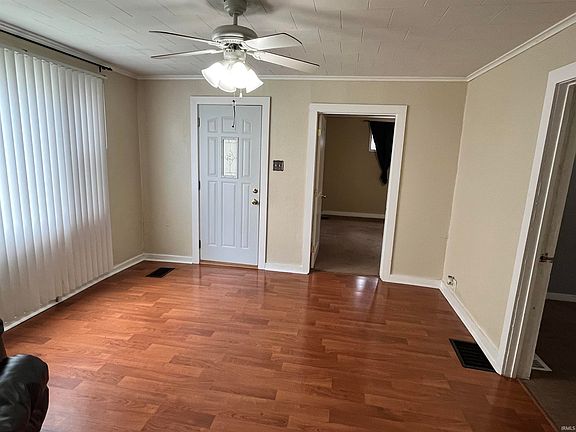 A nice single story, 3 bedroom - 1 bathroom home on the west side of town with a detached garage. Tons of updates. Newer flooring, central air conditioning, cabinets, and paint. The roof is 6 years old and garage roof is approximately 2 years old. Partial basement with a functioning sump pump. Comes with kitchen appliances as well as washer and dryer. Main floor laundry. Fenced in yard with space for off street parking. Close to schools, parks, and shopping. Easy access to Hoosier Heartland Highway.