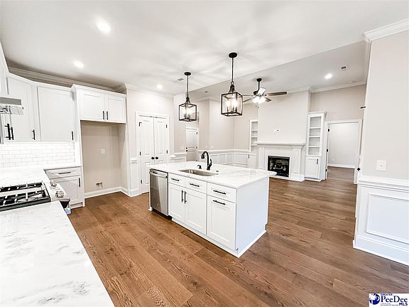 Gas log fireplaceBonus roomLarge island with seatingStainless steel appliancesEngineered hardwood floorsOpen layoutNatural stone countertops