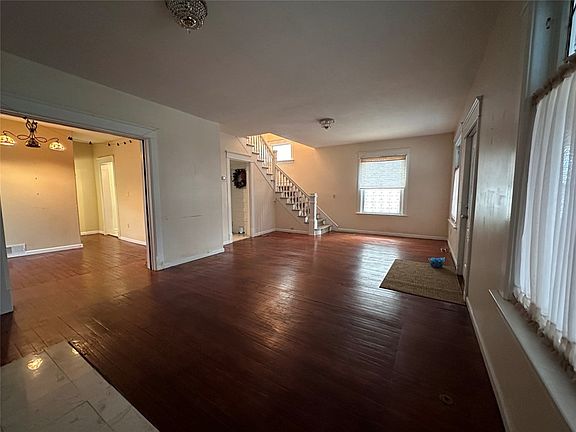 Well kept & updated home. Welcoming enclosed front porch to sit and enjoy the neighborhood. Has own cement driveway to garage (garage roof needs redone). The floors are beautiful wood floors, ornamental fireplace in LR & Primary BR, 2 full baths (one remodel upstairs & the 1st flr bath is newer w/shower). Big backyard fenced in (not sure who owns fence) & newer built deck. Two of the upstairs BRs will need Armoir. Furnace is newer, hot water tank approx 2025, electric box & wiring updated, kitchen remodeled w/Oak cabinets & ceramic floor & lighting. Windows are all vinyl windows. 2 window air conditioners included. Great Value for move in condition home!