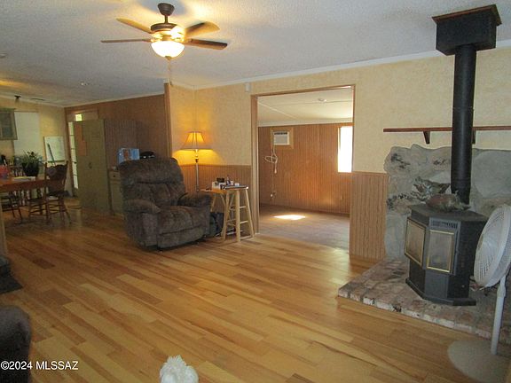 This is an immaculate property inside and out! The home features 2 br 2 ba open spacious floor plan. Gas stove for heat, lots of storage. Arizona room with storage,Metal Roof, 2 car garage, covered RV parking