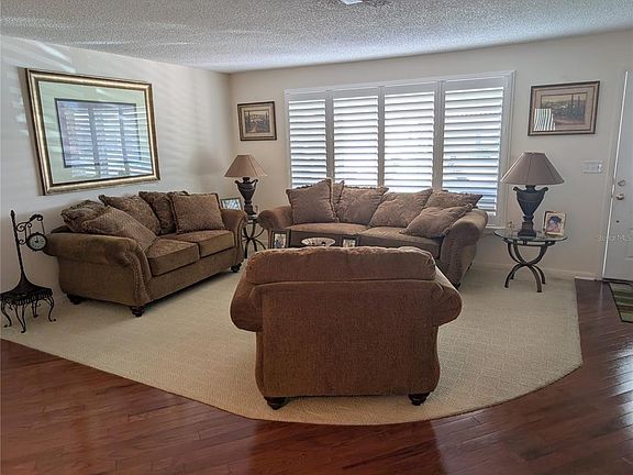 Attention Golfers, Sunseekers, Snowbirds...perfect opportunity to own a fantastic home on Florida's Gulf Coast. Located close to Mainlands Unit 6 clubhouse & pool, this well maintained 2BR/2BA/2CG "Gormay" showcases Pride of Ownership. A coastal flair showcases the exterior. The covered front porch provides a relaxing space to enjoy the Florida lifestyle. Main entry into living room features a stunning hardwood landing. The open concept living area includes the Living, Dining & Florida rooms all surrounding the "Heart of the Home"...the kitchen. Bedrooms & baths are located in hallway accessed from living room. Interior features in living area include warm autumn décor, rich wood flooring and neutral carpeting, ceiling fans and updated light fixtures. The eat-in kitchen features large pantry area, stunning granite countertop, white cabinetry, white double sink satin with tall nickel faucet w/pulldown sprayer, white appliances (Whirlpool refrigerator/glass cooktop range, GE microwave hood/dishwasher), inset ceiling with amazing uplighting, ceiling fan and tile floor. Eat in dining area has direct access to laundry area, located in the garage, which offers a Whirlpool Washer/Dryer set. The Florida room has a wall of windows providing great natural light as well as an awesome view of the backyard, ceiling fan & pass thru window to kitchen...great for entertaining. Dining room connects living room, Florida room & Kitchen. Spacious Primary & Guest bedrooms each have large walk-in closets, ceiling fans, large windows & carpeting. Both bathrooms feature raised vanities with solid surface countertops, satin white vanities, tile flooring, light bars, newer commodes, vents, mirrored medicine chests & satin nickel faucets/shower heads. Primary ensuite bath offers a white walk-in shower w/glass doors & handheld shower heads. Guest bath has a white bathtub w/shower, white tile tub surround. Exterior features include a new cement driveway, covered front porch, gutters/downspouts, updated windows, French drain & tile roof (2003). In addition to the laundry area, the Garage features keyless entry, updated GE Electrical Panel, Carrier HVAC system (2015), State water heater, pull-down stairs, Chamberlain garage door motor (2025), work bench, extra storage cabinets & exterior side door. Unit 6 welcomes 2 pets! Monthly maintenance fee of $395 includes lawn care/irrigation maintenance, exterior painting/power washing, water/sewer/trash, internet/cable in addition to maintaining all community property (clubhouse, pool, roads, sidewalks, lakes)! Mainlands Unit #6 is in an active, 55+ community offering a clubhouse, heated in-ground pool, shuffleboard courts, public golf course & many other activities. A Tropical Paradise located in the "Heart of Tampa Bay" centrally situated between St. Petersburg, Clearwater & Tampa. Additional conveniences include nearby shopping, sporting/cultural venues, excellent medical/emergency care facilities, restaurants, banking, churches and easy access to beautiful Gulf coast beaches, interstate & two airports.