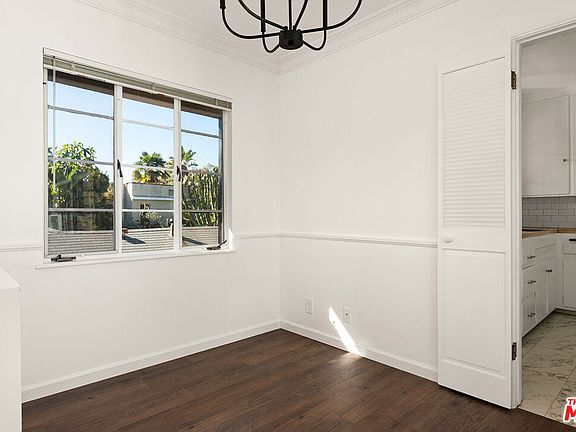 This bright, upper-level 1 bedroom, 1 bathroom home is located in a classic Beverly Hills courtyard building, just steps from the Four Seasons Hotel and Robertson Blvd. The unit features crown molding, modern light fixtures, updated flooring, and plenty of natural light throughout. The spacious living area flows into a charming dining nook off the kitchen, which offers ample cabinet space and includes a convenient secondary entrance for added ease and accessibility. The bathroom is refreshed with a sleek vanity and a full tub/shower combination. Additional perks include one assigned carport parking space, on-site laundry facilities, and water and trash included in rent. Set in an exceptionally convenient location near Cedars-Sinai, the Beverly Center, The Ivy, Alfred Coffee, and a variety of popular dining, shopping, and entertainment destinations.