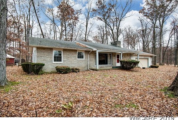 Ranch, 3 bed, 1.5 bath, 1.75 wooded acres, minutes from Spencerville and Lima shopping, large living room with stone wood burning fireplace, hardwood floors, remodeled full bath, newer windows and roof, first floor laundry and large 27x31 attached garage.