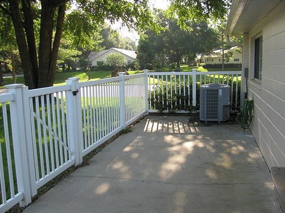 Exceptionally nice, 2/2/1+ end-unit Villa on corner lot with Florida Room and adjacent fenced patio. Roomy Kitchen with plenty of cabinets and counter space has cafe area and is open to the Florida Room. New HVAC system installed 7/31/12, roof repalced in 2008. Shows very light and bright! Golf cart, furnishings and furniture negotiable.