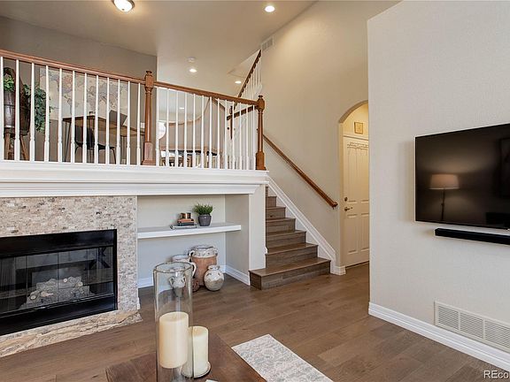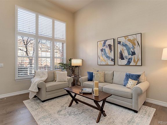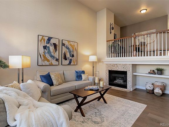 Beautiful and meticulously maintained Townhome located in a desirable Lone Tree Ridgegate community close to Charles Schwab and Skyridge Medical Center. This charming townhome features an open floor plan, a fourteen-foot ceiling in the family room with huge windows and the fireplace, new furnace and water heater, newer engineering hardwood flooring, interior paint, upgraded carpet, white cabinetry with a granite countertop in the kitchen, dining area and a deck for grilling. Vaulted ceilings throughout the home give it an airy, light feeling. The loft can serve as an office. The Main bedroom has an additional seating area, a five-piece bath, walk-in closet and a private deck open to the green belt. The Second bedroom has its own full bathroom and spacious walk-in closet. The laundry room is conveniently located on the second floor. Enjoy this quiet block in Lone Tree, conveniently located within just a few minutes walk to Bluff Trails, the Library, restaurants, coffee shops, Recreation and Art centers, and retail shopping.