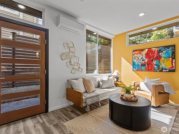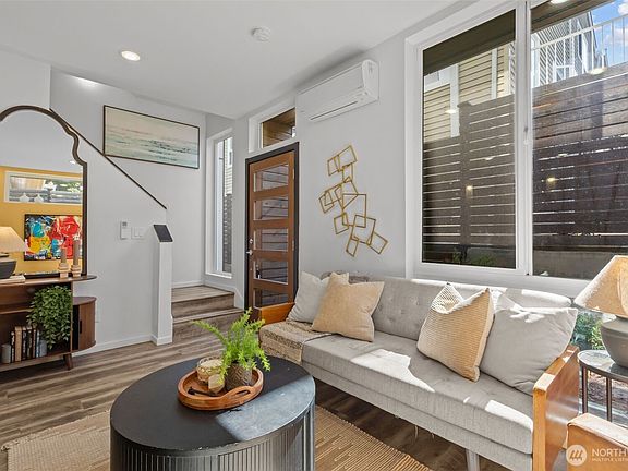An affordable option for living in the city! This like-new home features huge windows that flood the space with natural light, modern kitchen with gas stove and large island seating area, A/C, private side yard with garden space, and rooftop deck with gorgeous 360 views. Prime location with easy access to Downtown, Green Lake, Greenwood, and Northgate Light Rail Station. No HOA. Welcome home!