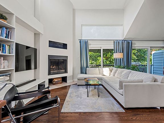 Dramatic corner fireplacePrivate balconyNew guttersNew cabinetsSoaring ceilingsExterior siding and paintLuxury vinyl plank