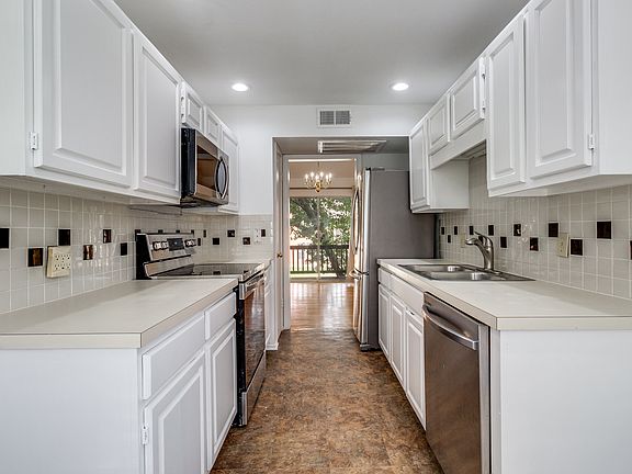 This townhome-style condo has been recently refreshed, offering a bright and low-maintenance living experience. Upgrades in the last year include fresh paint throughout, new low-maintenance flooring in place of carpet, and new 2-inch faux wood blinds. The bathroom countertops have also been upgraded.This spacious condo boasts an abundance of natural light and is conveniently located near grocery stores, retail shops, and a wide variety of restaurants. The large living room on the second floor features a vaulted ceiling and a wall of windows, creating an ideal space for entertaining or relaxing. For your convenience, the home provides ample closet space, a washer, a dryer, a spacious fenced patio area, and a one-car garage. Additional open parking is also available. The split bedroom layout makes this an ideal setup for roommates. Located in Richardson ISD. 12 months