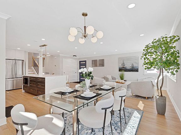 This sun-filled, move in ready all-brick split-level home in the Devonshire school district boasts a perfect blend of modern design, luxury, and comfort. Featuring an oversized lot (60x130) 3 bedrooms, 2 bathrooms, a spacious backyard and an attached 1.5-car garage - this home is exceptional! Step into the open-concept first level, ideal for entertaining. The chef's kitchen is equipped with ample counter space, custom cabinetry with 42-inch uppers and under-cabinet lighting, brand-new stainless steel appliances, and stunning quartz countertops with a waterfall island. The dining area offers plenty of room for a large table, while the living room provides space for comfortable seating. The entire home features new hardwood flooring and brand-new windows for a bright and modern feel. Upstairs, you'll find three spacious bedrooms illuminated by dimmable recessed lighting, with ample closet space. The stylish upstairs bathroom includes a double vanity and sleek black hardware. The lower level offers a large, sunlit family room with a dry bar and closet. The additional bathroom features elegant brass fixtures and an enclosed stand-up shower. A spacious utility room includes new LVP flooring, a washer and dryer, laundry sink, and updated mechanicals, along with plenty of storage space. Additional upgrades include new interior and exterior doors, a new garage door, fresh paint, trim, and crown molding throughout. The home has a 4-year-old roof, gutters and a 4-zone in-ground sprinkler system. Located in a highly desirable school district, this home is within walking distance to Devonshire Park, a public pool, and tennis courts. It is also conveniently close to Old Orchard Mall and public transportation.