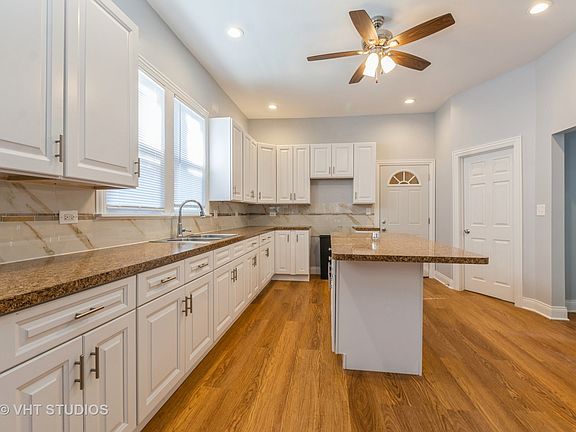 Remodeled 5 bedroom 3 bathroom two story home with new hardwood floors, remodeled kitchen with island, white cabinets and laminate countertops, remodeled baths, new c/a & furnace, newer roof on the house (7 yrs.) and newer garage ('20). There is front and rear access to the second level. The second floor includes a primary bedroom suite with loft area, large walk-in closet and new en suite bath, 5th bedroom and den/office! The newly finished basement has new vinyl tile, a lower level family room, full bathroom, laundry room and bonus room. There is a side driveway, 2.5-car attached garage and a fenced yard. Close to schools, shopping, public transportation, Jesse Owens Park and I-94/I-57 expressways.