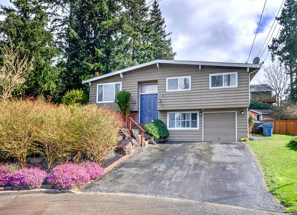 Welcome to this beautiful Edmonds home located on a large lot at the end of a cul-de-sac. Open floor plan with completely remodeled kitchen featuring quartz countertops, tile backsplash, SS appliances, wine cooler and oversized island. Large family room with vaulted ceilings and cozy gas insert. Master bedroom with gorgeous sliding barn style closet door. Downstairs provides additional living space with wood fireplace, bonus area for office or crafts, 4th bedroom, and convenient 3/4 bath. New engineered hardwood floors upstairs and new carpet in bedrooms. Large deck for entertaining. Fully fenced, spacious backyard with fire pit, play structure, and storage sheds.