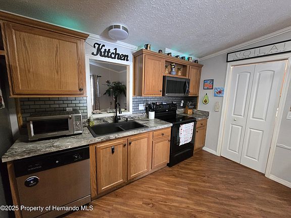 This home offers a Huge Primary Bedroom and En Suite with dual sinks and a garden tub. The spare bedrooms are sizeable with walk-in closets. Inside the home you'll find your Laundry room is adjacent to the Kitchen with a sink, storage cabinets, and shelving giving you plenty of space to wash, fold, and store supplies, all while keeping your laundry behind closed doors. This home has been updated throughout, has Laminate Wood Floors and a Wood burning fireplace.