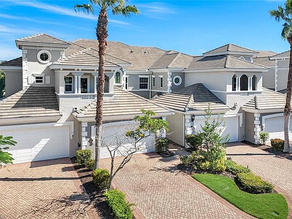 Step inside and be enveloped in the atmosphere of calm. This absolutely lovely, perfectly and completely furnished coach home in Fiddler’s Creek is the dream. Thoughtfully designed and decorated, using every area to create a moment. 3 spacious bedrooms, 3 baths, living room, dining room, family room, adorable casual dining area off the kitchen, plus an outdoor covered oasis on the private lanai means relaxation at every turn. Primary Suite offers 2 large walk in closets, dual vanities, soaking tub, new glass walled shower, and separate water closet. Large sliders off the bedroom feature water views and palms swaying in the breeze. New wide plank Cortec flooring throughout, 2 year old tankless water heater and AC, freshly painted white walls, and a warm comfortable palette of color that just feels perfectly harmonized. White kitchen with stainless appliances and new sky blue large tile backsplash adorns the wonderful heart of the home. The glorious Florida light streams in through the plantation shuttered windows and rooms at just the right moments, allowing bright good morning coffee on the lanai and cool shade in the afternoon to unwind. This unit has ample storage plus the ability to install an elevator if desired.The village of Varenna has the advantage of newer roofs, gutters, downspouts, impact windows, freshly pained exteriors ant it’s own village pool nearby. Situated on a quiet cut de sac in the fabulous community of Fiddler’s Creek, offering a resort lifestyle like no other. Amenities galore including the 54,000 sq ft Club and Spa, Fitness center, 2 resort pools, tennis, bocce, ample pickle ball, 2 restaurants, plus optional golf, beach club, and marina memberships. Minutes to Marco Island or downtown Naples, this is the one.