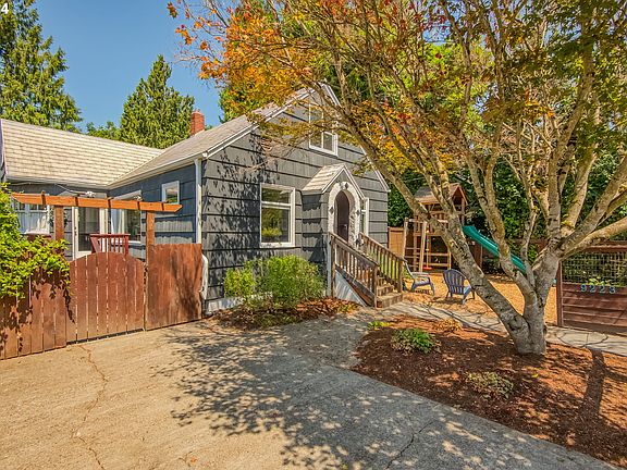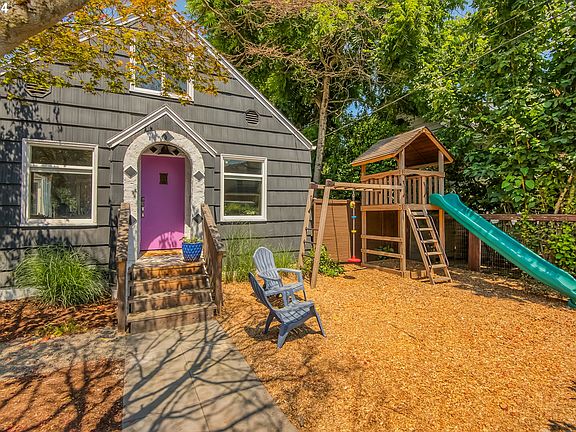 Reduced $25,000 This completely remodeled home is in the thriving, historic St. Johns neighborhood in North Portland. The Tudor style with a lovely lavender door is an open plan with a bedroom and full bathroom on each floor. This home is completely remodeled, and it just shines inside. The living room, with wood floors and a side patio, is spacious. The dining room sits against a giant picture window adorned with a modern industrial pendant light. The kitchen has an oversized cook, prep, eating island, room for bar stools, and a curved built-in dining nook. The kitchen’s palette of sharp grey and white is stunning, and the tile backsplash with dark grout is unique and compliments the SS appliance package. A room off the kitchen can also work well as a space for additional storage, a hutch for cookbooks, and a coffee bar! One bedroom, with a walk-in closet, can double as a workspace on this main level. Adjacent is a fully remodeled bath with a glass-paneled shower, stairs to the upper level, and a sizeable primary suite. Suite has a remodeled second “Spa” bathroom with soft colors, peaked ceilings, a soaking tub, and a large wood shelving unit for towels, lotions, and potions. A Sanctuary! The lower level has two additional bedrooms, another full bath with a walk-in shower, a dedicated laundry room that can be used as an office or play area, and a cozy sitting space. The backyard hosts a concrete patio with a gazebo and a huge covered deck. The yard is fully fenced with a good-sized chicken coop for your Urban Farmer dreams. This area gives your home additional living space for our grey days in Portland and gathering with friends. Between the back door and the patio is a 24 x 6 storage room with a concrete floor for sports equipment and miscellaneous storage. A gated, concrete front driveway opens to the deck off the kitchen for grocery delivery and bikes. Very Walkable 75/Biker’s Paradise 92-Four Bus Lines. (#4, #11, #44 & # 75.) Location, Condition & Price = A+! [Home Energy Score = 1. HES Report at https://rpt.greenbuildingregistry.com/hes/OR10183634]