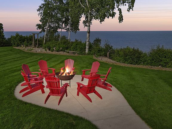 Walk into the yard and find a 10 seat fire pit with quality Adirondack chairs overlooking Lake Michigan. Walk a bit further and find the swing that is the prime location for sunrise coffee and calming sound of the waves.