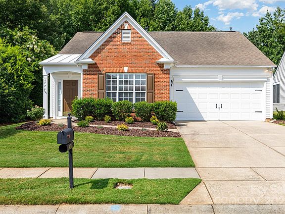 Welcome home to this beautiful one-story, 2-bed, 2-bath ranch in the heart of Ballantyne, just minutes from Blakeney, Stonecrest, and Waverly for shopping, dining, and entertainment. Situated on a rare premium lot, it backs onto mature privacy woods for a true park-like feel. Recent updates include a freshly repainted garage door, trim, and front porch; updated fixtures throughout; and thoughtfully designed new landscaping. Inside, you’ll love the open floor plan with expansive windows that fill the space with natural light. The spacious primary suite features tray ceilings, a walk-in closet, and an en-suite bath. Outside, enjoy the cozy screened-in porch and peaceful wooded views surrounding the back and side of the property. Garage features a Tesla charging station. Low quarterly HOA fees include lawn maintenance! All this in one of the most desirable and convenient locations Charlotte has to offer! SELLER WILLING TO HAVE KITCHEN PAINTED. Rental restrictions in this community.