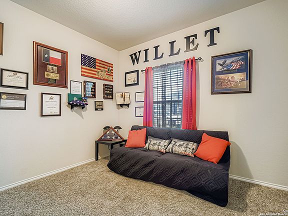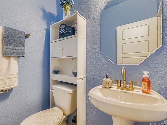 Motivated Seller with VA Assumable Loan @ 2.75 welcomes you to this beautifully designed 2,633 sq. ft. two-story home combines comfort, efficiency, and timeless style. With its open floor plan and thoughtfully crafted spaces, it's the perfect setting for both everyday living and memorable gatherings. At the heart of the home is a chef-inspired kitchen, featuring a generous island, sleek countertops, abundant cabinetry, and modern appliances. The kitchen flows effortlessly into the dining area, where natural light pours in, creating a warm and inviting space for family meals or entertaining friends. The downstairs primary suite is a true retreat-spacious and serene, complete with a spa-like bath featuring dual vanities, a soaking tub, separate shower, and a large walk-in closet designed to keep everything organized. Upstairs, you'll find two generously sized secondary bedrooms and a versatile game room-perfect for movie nights, game days, or a cozy lounge space. A special highlight is the fourth bedroom, which functions beautifully as a second primary suite or private guest in-suite, offering comfort and privacy for extended family or visiting guests. Step outside to relax on your covered, screened-in porch-ideal for enjoying morning coffee or evening sunsets-plus a storage shed for extra convenience. With solar panels already in place, and space for a water softener, this home is efficiency and cost saving. Life in the Notting Hill community is full of amenities, including a resort-style community center with a pool, playground, sports courts, scenic trails, and BBQ areas. Conveniently located near I-10, with quick access to 1604, Loop 410, and I-35, in close proximity of Randolph AFB, Ft. Sam Houston, and other attractions such as shopping, dining, and entertainment. This home has everything you've been searching for in style, space, efficiency, and location. Don't miss your chance to make it yours!