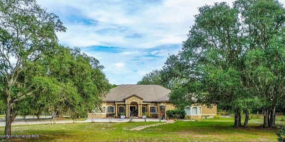 Massive Custom built Home Located on a spacious 1.16 acre country setting in Ridge Manor Estate. This executive style 2008 custom home boasts 4043 sq ft living and 5115 sq ft total. Home offers 4 Bedrooms, Theatre room, Den, Formal Living Room, Dining Rooms and Family Room with open floor plan. There is a huge upgraded kitchen with second oven, specialty cabinets, glass mosaic backsplash, breakfast bar and pantry. Upgraded tile, columns, and soaring ceiling throughout. Large Master suite includes raised pedestal bed, huge walk-in closets, double sinks,3 headed shower and jacuzzi bath. Easy commute to Tampa, Orlando and Ocala. Shop at Webster's famous farmer's market.This is luxury at it's finest.