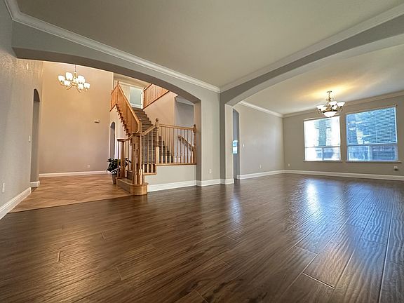 Waterfall islandDedicated office spaceNewly remodeled modern kitchenEntertainment roomWaterfall quartz countertopsWhole house crown moldingGas cooktop