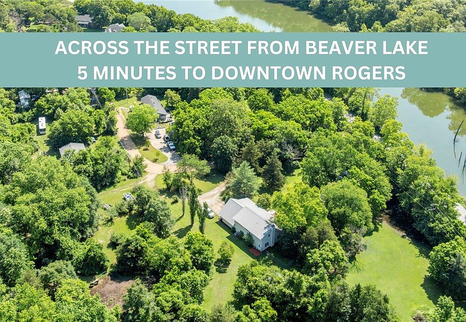 Lake living with acreage! This property sits on almost 2 beautiful acres right across the street from Beaver Lake. Pack up your gear and walk down the street this summer to go fishing. Conveniently located 5 minutes from Downtown Rogers! Also a short drive to Lake Atalanta. The acreage with this property provides you with so many options. Bonfires, build a pool, chickens, you name it. Sit on your front porch and enjoy the serenity and privacy this property provides. Step inside and you'll find an open floor plan. The living room is complete with a wood stove, cozy up this winter inside while you wait for lake season to return. Check out under the stairs, plenty of space to store anything you need. The pantry provides ample storage as well and cabinet space. The oversized garage is great for all your lake and fishing gear. Upstairs you'll find two over sized bedrooms and a bonus room! Come see the slice of heaven on Beaver Lake! This property is outside of city limits.