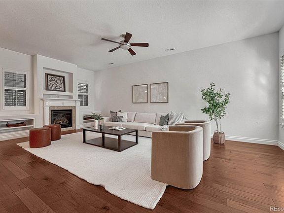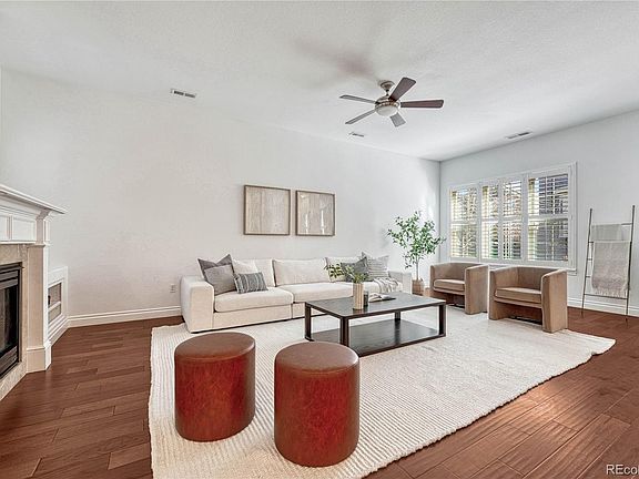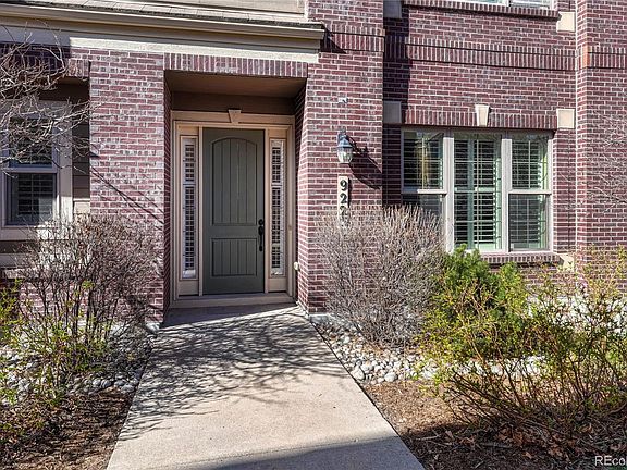 Fresh paint, new carpeting, extra high ceilings, and private plantation shutters highlight this gorgeous 3br/3ba brownstone townhome located in the heart of Lone Tree. A meandering sidewalk leads to an open main floor with wood flooring, large kitchen and family room. The kitchen has rich, wood cabinets with under cabinet lighting, granite counters and a spacious island with space for seating. A walk-in pantry adds storage space and the stainless appliances include side by side fridge, built-in double oven, microwave, dishwasher, 6-burner stovetop, overhead range hood, and undermount sink is stylish. A large dining area has a large overhead light and offers entertaining space. A warm gas fireplace is surrounded by art niches and the high ceilings add to the largeness of this room. A beautiful and fully enclosed courtyard with a side path and gate has 2 gas lines and extra outlets for grills and firepits, offering an easy way to create a private oasis. A half bath, under stair storage, tankless water heater is handy. Access to the 2-car garage includes a sink and interior faucet; perfect for outside watering even in the cold months. The wood and wrought iron banister lead to a huge master suite with a gas fireplace, great natural light and a large 5-piece bathroom with spacious walk-in closet. A soaking tub, walk-in shower and dual sink vanity with granite tops will pamper. Two additional bedrooms, a bath with tub/shower and upper laundry room with W/D add to the convenience of this fantastic townhome. Close to Bluffs Regional Park, South Suburban recreation centers, trails, and golf courses. Nearby light rail stations, freeway access, and a plethora of shopping and dining options add to the convenience of this attractive home. Easy commutes to DTC and DIA via I-25 and E470. Public/private schools and Sky Ridge Medical Center are just minutes away.