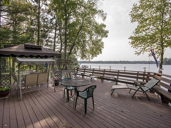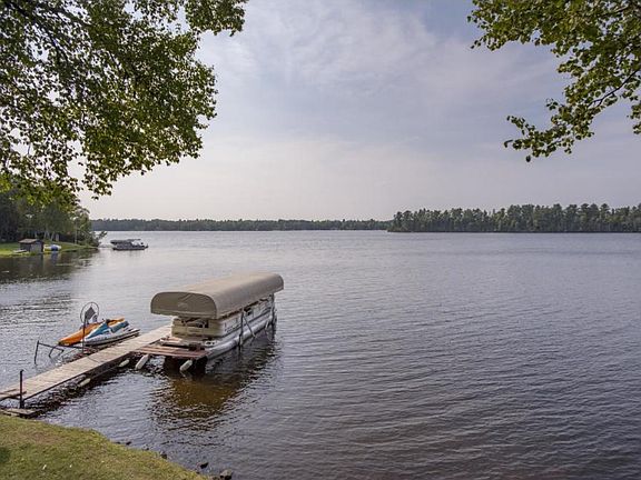 Lake living at its finest! This place has it all- Over 250' of beautiful shoreline. Main house, guest house, boat house, huge deck, paver patio, porch, 2 garages (one is heated and one has drive up storage for atv's & boats). Main house features 4 bedrooms, 2 baths, a vaulted living room with fireplace, walks out to covered porch and has a wall of windows with amazing lake views! Updated kitchen with a spiral staircase leading you downstairs. Very well cared for and meticulously maintained.