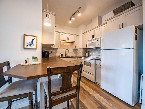 Welcome home to this stunning 2 bed and 2 bath, fully updated 4th-floor condo that perfectly blends modern design with everyday comfort! Step inside and feel instantly at ease in this bright, open, and airy space where every detail has been thoughtfully refreshed. The brand-new vinyl plank flooring flows seamlessly through the main living areas, while new carpet adds a cozy touch in the bedrooms and fresh tile brings a polished finish to both bathrooms. The chef-inspired kitchen is a showstopper — featuring brand-new lower cabinets, stylish new backsplash, updated hardware and lighting, and a new dishwasher that makes cleanup a breeze. Retreat to your spacious master bedroom, complete with a feature accent wall, a dreamy 4-piece ensuite, and an amazing custom closet system that maximizes every inch of storage. Both bathrooms boast all-new vanities, modern mirrors, and sleek fixtures, giving the space a clean, contemporary feel. Freshly painted throughout and outfitted with new lighting fixtures and fire alarms, this condo truly shines from top to bottom. The bright natural light and modern finishes make it easy to imagine entertaining friends, studying in style, or just relaxing after a long day. Perfectly suited for young professionals, singles, couples, or college students, this home offers the ideal balance of sophistication and convenience. Enjoy the morning view or late night evenings on your covered deck withh bbq hookups. 2 parking stalls for added convienence. Everything you need to enjoy a connected, low-maintenance lifestyle.