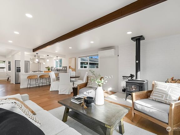 Newly remodeled, this home offers an open layout and modern feel. Vaulted ceiling with wooden beams in the living room, open concept kitchen and dining, and a spacious deck make this home perfect for entertainment. The wood stove is perfect for cozy winter nights and 3 bedrooms on the main floor provide living flexibility. A fully finished basement, with plumbing for a future kitchenette, offers a spacious space for hosting/tv room/play area/gym and includes a separate room for an office. Want to play outside? Plenty of space in the yard to create the perfect summer dream. Brand new furnace, tankless water heater, a/c, & brand new systems, this is a ready to move-in home! Insulated two car garage gives option for a workshop/art studio.