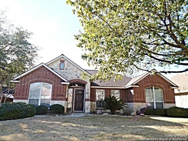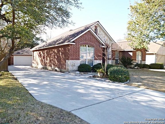 Upgraded ranch style home@FOSSIL SPRINGS! Masterful design & modern touches are uniquely embodied in this Single Story 2490 sqft gem.The open floor plan encompasses 3spacious bedrooms, 2.5 baths, living rm w/ wood burning fireplace, 2dining areas ,& a sleek/stylish kitchen w/stainless steel appliances. Its kitchen flows through the expansive family rm w/fireplace & patio door that opens up to a spacious rear backyard featuring gazebo w/ flagstone slab. Quick access to 1604 & I-10. Mins to La Cantera & UTSA.