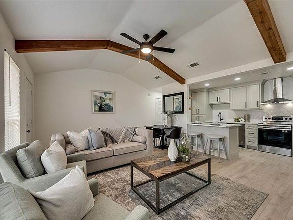 This fully renovated 3-bedroom, 2-bath home is a true gem! Inside, you'll find beautiful waterproof laminate flooring, spacious bedrooms, and modern, fully remodeled bathrooms. A brand-new roof and A/C unit provide comfort and peace of mind. The inviting living room, with its striking exposed beams, flows seamlessly into the stylish kitchen featuring a spacious island, bar seating, and sleek quartz countertops perfect for entertaining. Step outside to enjoy a large-covered deck and a generous backyard, ideal for hosting gatherings or relaxing in your own private retreat. Centrally located in the heart of Dallas, this home is one you don't want to miss!
