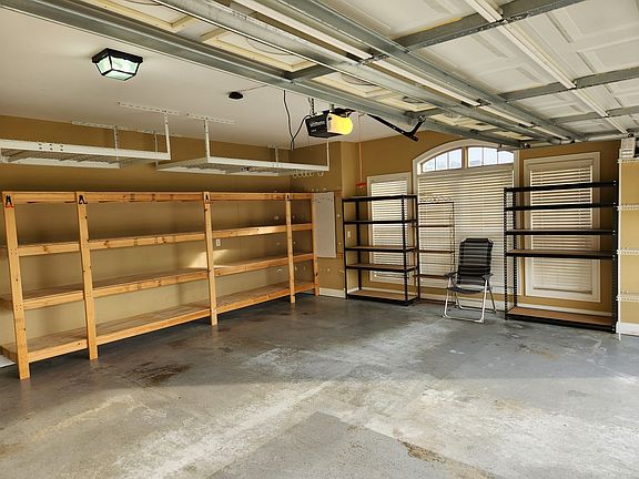 The 2-car attached garage is over sized with plenty of built in storage shelves and the attic has additional storage space.
