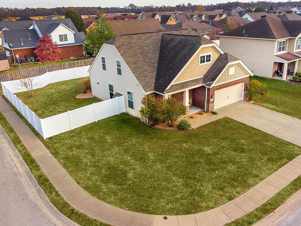 Situated on the corner this Craftsmen style home offers a NEW maintenance free fence, nice landscaping, red brick & vinyl with stone accents. Just minutes from town on Evansville's Northeast side. Spacious covered front porch upon entry and showcasing 9ft ceilings , open layout, and loads of natural light. Great room, kitchen, breakfast nook, and owners suite are all located on the main level plus additional 2 bedrooms, and BONUS on upper floor-totally over 2200 SF of living space to enjoy. The great room has gas fireplace with wood plank accents & the kitchen is large with oversized breakfast bar which can accommodate 4 bar stools easily. There is an abundance of white castled craftsmen style cabinets and a large 6 x 4 window overlooking back yard from you kitchen sink. Fully equipped with stainless steel refrigerator, range, microwave, and dishwasher. Breakfast nook is spacious with easy access to your patio for entertaining. Owners suite is on MAIN FLOOR and featuring a bathroom that has all the bells and whistles. Including:double vanity bowls, lots cabinets for storage, walk-in tiled shower with glass doors and separate jet tub for relaxing . Plus.. walk-in closet and enclosed water closet with toilet. The laundry room, 1/2 bath, large storage under stairway and an amazing coat closet (7 x 5) upon entering the home top of the main level. On the upper floor you will find 2 additional bedrooms both with large walk-in closets, bonus room with large closet, & full 2nd full bathroom. There is an attached 2 car garage with 100 SF hanging loft area and 7 x 3 area with shelving for storage. 200 AMP service, Ring door bell, & tankless water heater. Average utilities are 242.00 per month , immediate possession, & swing set is included in sale. Check this home out today! This is a relocation property SEE RIDER TO PURCHASE AGREEMENT