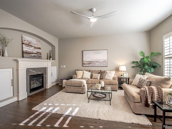 Tucked in the heart of Lone Tree, this fantastic updated townhome boasts an open floor plan, spacious gourmet kitchen and huge primary bedroom suite, plus all the convenience a lock-and-leave property provides. Step into the bright entryway to find an elegant living room featuring a gas log fireplace encased in tile, and built-in closed storage. Hardwood floors lead into the heart of the home presenting a dining room with access to the covered porch, family room, and the stunning eat-in kitchen offering an oversized granite island with breakfast bar seating, stainless steel appliances, and a step-in pantry. A built-in workstation and powder room complete the main level. Look forward to relaxing in your upper-level primary suite providing access to a private balcony, sitting area with stylish gas log fireplace and a 5-piece bath including a generous walk-in closet, free standing tub, and beautifully tiled glass step-in shower with bench featuring three different shower heads. Two secondary bedrooms, updated 3/4 bath and laundry room with washer/dryer included fill out the second floor. The finished basement contributes an additional open room perfect for an at-home office, hobby room or home gym, built-in mudroom storage and bench, as well as access to the finished, oversized tandem three-car garage. This community has something to offer everyone whether that means walking the trails of Bluffs Regional Park, taking advantage of close proximity to the Lone Tree Performing Arts Center and Library, or enjoying the many nearby shopping and dining options. Don’t miss out on the chance to make this your new home! *Open House 1/6 from 12-2pm*