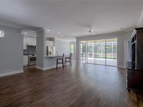 Beautifully updated open concept home in highly sought after Country Creek golf community. This home boast an updated kitchen with white shaker cabinets, nice island with quarts counter tops and stainless steel appliances. Updated bathrooms with white vanities, subway tile, master bath has large curbless walk in shower with separate water closet. Whole house is painted grey with white crown molding. Dinning room over looks the great room and lania. Breakfast nook off the kitchen. Lovely bamboo floors throughout. Lania over looks wooded area very private. Home comes with a bundled golf membership. The Villages at Country Creek features a 18-hole executive golf course, beautiful clubhouse and is home to the Creekside Restaurant, 5 community pools, 5 tennis courts, fitness center, bocce ball and a variety of other activities. Close to 41 & I-75, Florida Gulf Coast University, Miromar Outlets, Coconut Point Mall, RSW Airport and so much more.