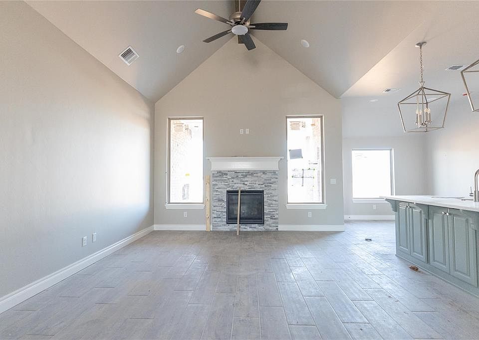 This Sage Bonus Room 1 floor plan includes 2,550 Sqft of total living space, which includes 2,300 Sqft of indoor living space and 250 Sqft of outdoor living space. There's also a 625 Sq Ft, three car garage with an in-ground storm shelter installed. This home offers 4 bedrooms, 3 full bathrooms, 2 covered patios, a utility room, and a bonus room. The living room features an outstanding cathedral ceiling with a ceiling fan, a beautiful fireplace with our stacked stone surround detail, large windows, rocker switches throughout, Cat6 wiring, and wood-look tile. The kitchen has decorative tile backsplash, built-in stainless-steel appliances, well-crafted cabinets to the ceiling with under cabinet lighting and cabinet hardware installed throughout, pendant lighting, 3 CM countertops, a corner pantry, and a large center island equipped with a trash can pullout, sink, and dishwasher. The primary suite boasts an extraordinary, sloped ceiling detail with a ceiling fan, sizeable windows, and our cozy carpet finish. The attached spa-like primary bath features a dual sink vanity with framed mirrors, 3 CM countertops, a European walk-in shower, a free-standing tub, a private water closet, and an incredible walk-in closet that will leave you speechless. The covered back patio offers a wood burning fireplace, a TV hookup, and a gas line. This home also features healthy home technology, a fresh air ventilation system, a tankless water heater, and so much more!