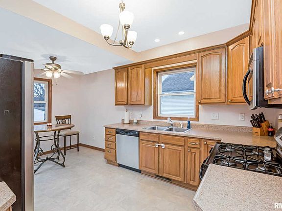 Charming 2 bedroom Bettendorf bungalow completely remodeled in 2008. Brand new roof in August 2019. Master bedroom suite includes small office nook. Enjoy a cup of coffee on the front porch or deck. Detached oversized 1 car garage and off-street parking in driveway. All kitchen appliances and shed included. Convenient location.