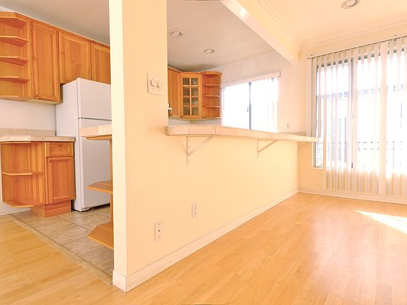 Great LOCATION UPPER UNIT & AVAIL NOW - 1 bedrooms + 1 bath apartment on the 2nd floor. Located in a renovated 2 story building offers recessed lighting in the living room, upgraded kitchen with expansive breakfast bar with granite tile countertops, included refrigerator and lots storage. Hardwood floors throughout except tile floors in kitchen and remodeled bathroom. This unit is located a block away from Montana street, with its upscale shopping and restaurants, and six blocks from the beach. Plenty of natural light and this community has laundry facilities on-site. Sorry no parking, no animals, smoking or vaping. Sq Ft is approximated. UNIT IS AVAILABLE NOW AND READY TO MOVE IN.