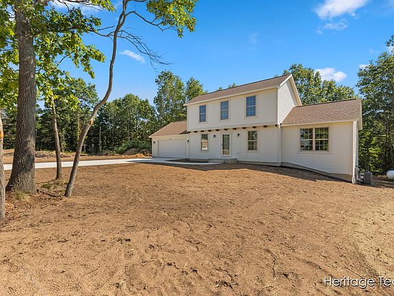 Two-story saltbox-style home on a scenic lot. Thoughtfully designed with arched accents and natural light. Main floor features living room, office with glass doors, kitchen with granite, tile and stainless appliances, dining area, half bathroom, front and back entry with closets, and primary suite with full bathroom and walk-in closet. Upper level has two additional bedrooms with walk-in closets, and a full bathroom. Lower daylight level has unfinished recreation, laundry, utilities and storage rooms, plumbed for a bathroom. Two-stall attached garage has a door to a deck in the private back yard. Gutters are installed. Yard is finished to final grade, no seeding or landscaping.
