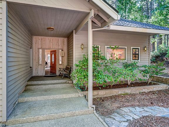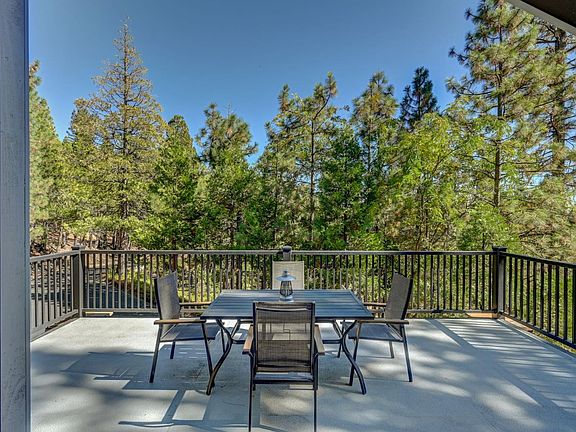 A Grizzly Ridge mountain home with wonderful style and features that bring enjoyment and ease of living. With nearly 3,000 ft on a full acre, there is plenty of room. The open, bright kitchen and dining are so inviting, and when the weather is right, move through the French doors onto the new pan decking to dine there. The spacious primary bedroom is located on the main level, and the adjoining marble bathroom features dual vanities, a separate tub and shower. The comfortable living room has a beautiful stone hearth with a soapstone wood stove. The wet bar with a refrigerator is convenient, between the kitchen and the living room. There is a den/office near the entry that is configured as the bunk room currently. Custom firewood room loads from outside, accessible inside. (How clever!) The other two bedrooms downstairs are fresh, with new vinyl plank flooring throughout. Outside, find a storage shed. New in the past six years are the roof, water heater, and two-zone HVAC units. The gentle access with a parking area large enough for a basketball hoop is a real plus. The fully finished garage has shelving and a utility sink. Beautiful lap siding, and aspen trees in the yard complete the charm of this home. Come enjoy mountain living with ease!