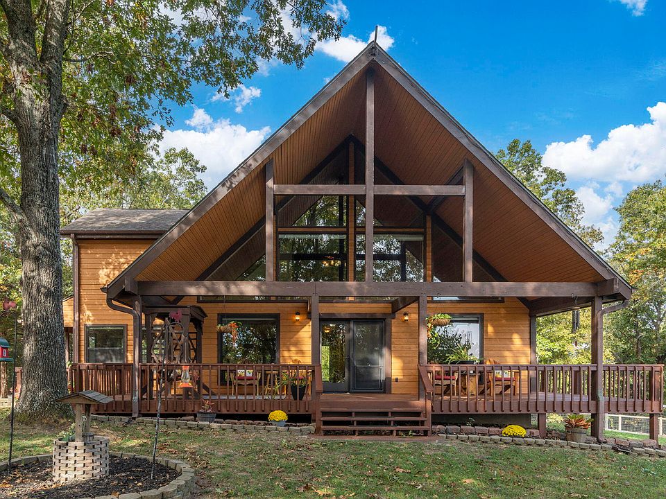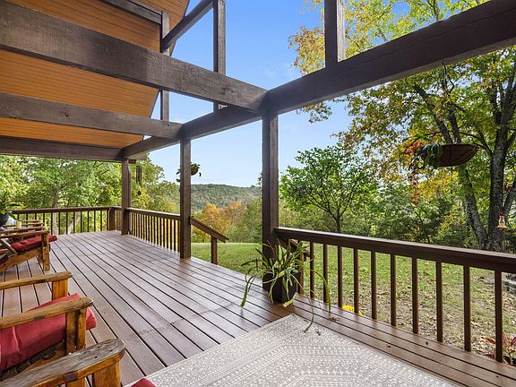 26.5 Acre Mountain Top Retreat - Galena, MOProperty Features: 26.5 secluded acres with gated entrance 2,140 sq ft home - open floorplan Vaulted ceilings with exposed beams Main level: kitchen, dining, living room, sunroom, 1 bed / 1 bath Upper level: primary suite with walk-in closet Wraparound porch with mountain views & covered hot tub Full property backup generator storm shelter Detached 2-car garage 60x40 workshop with 800 sq ft guest quarters with one bedroom, full kitchen, living room and bath (rent this out or in law quarters or guesthouse! RV hookups adjacent to shop