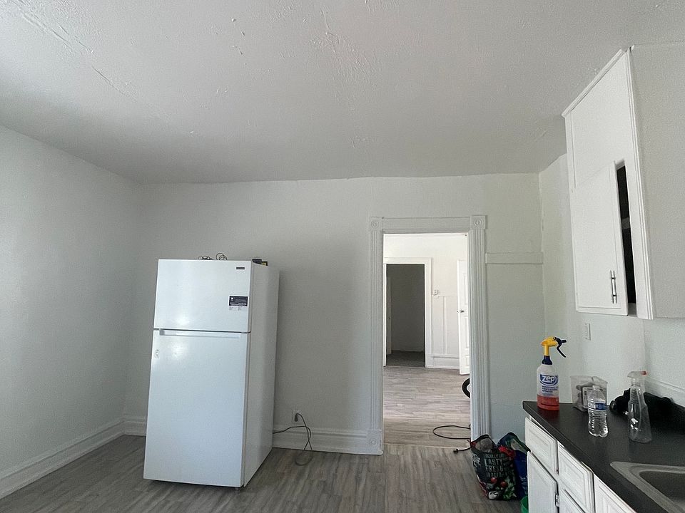 fresh paint, new floors, , new kitchen countertops. Washer and dryer in basement, owner pays waste tenant pay electric and gas .Shared picnic tables at the back of house . Off street parking in yard .