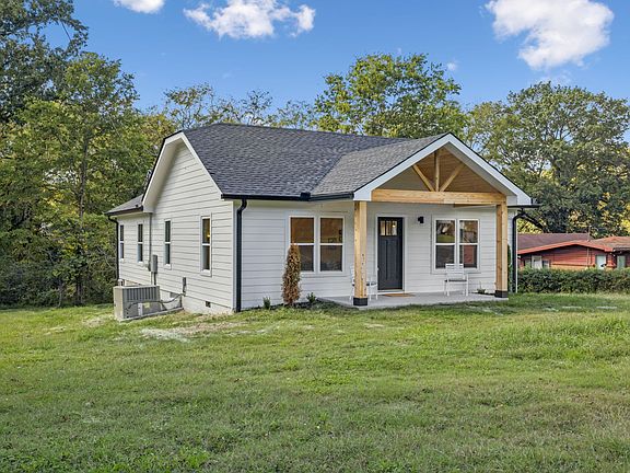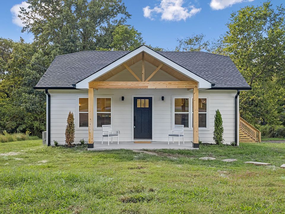 This fully renovated 3-bedroom, 2-bathroom single-level home offers a stunning modern interior set on an expansive .9 acre lot in Nashville. Inside, you’ll find bright open living areas with updated wood-look flooring, large windows, and a fresh neutral palette. The stylish kitchen features stainless steel appliances, white cabinetry, and a beautiful tile backsplash, flowing into the adjoining dining area. The private primary suite is paired with two additional bedrooms and a second updated bath. The home also includes an unfinished basement with concrete floors and partially finished walls—ideal for storage, utilities, or future expansion. Step outside to enjoy the covered patio overlooking the spacious yard—perfect for entertaining or relaxing. With carport parking, a wide driveway, and plenty of outdoor space, this property combines modern living with room to grow, all just minutes from local conveniences.