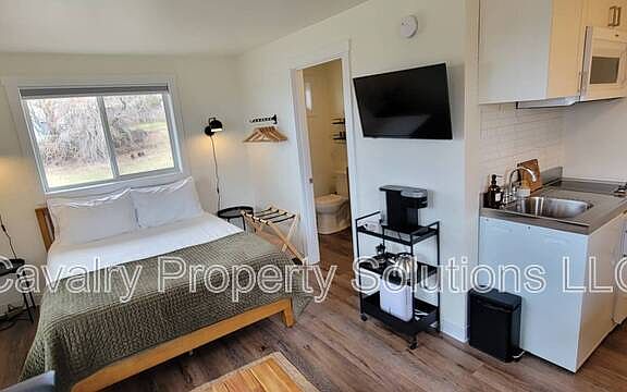 - Cozy living space with a small kitchenette, bathroom, and furnished living area
