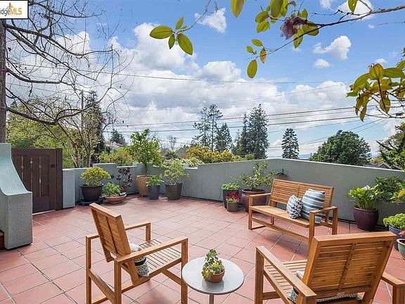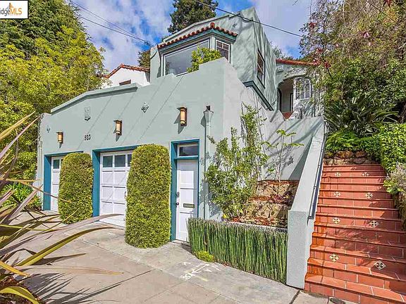 Located in the North Berkeley Hills this light filled Mediterranean has original charm and Golden Gate views. A traditional home with an oversized two car garage and conscientious updates. The kitchen has ample maple cabinetry, high-end stainless appliances and an eat-in area with French doors opening to the garden. The bedrooms and their closets are generous in size with hardwood floors and have attractive stained glass windows. A bonus office space with bookshelves and a large family room equipped with projector system and surround sound are on the lower level. Set up from the street there is easy access to the multiple outdoor spaces. Bask in the sun of the landscaped garden, tiled patios or soak in the serenity of the bay views from the hot tub.