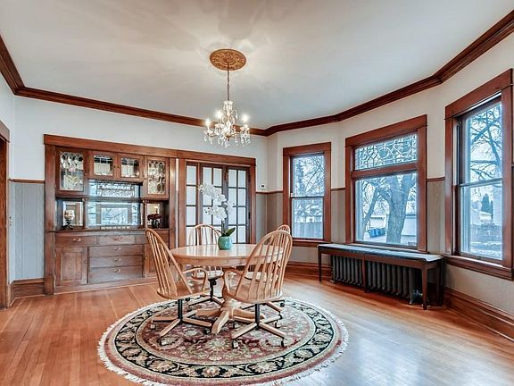 Phenomenal use of space in a beautifully updated home. Original, restored woodwork. High ceilings, open spaces with great light. Remodeled kitchen with new cabinets, counters, island, and pantry. Main floor guest bath. Large bedrooms upstairs and a master suite featuring a private bath with soaking tub, heated floors, and within closet. Newer roof, windows, high-efficiency boiler system. Third floor theater space with bar.