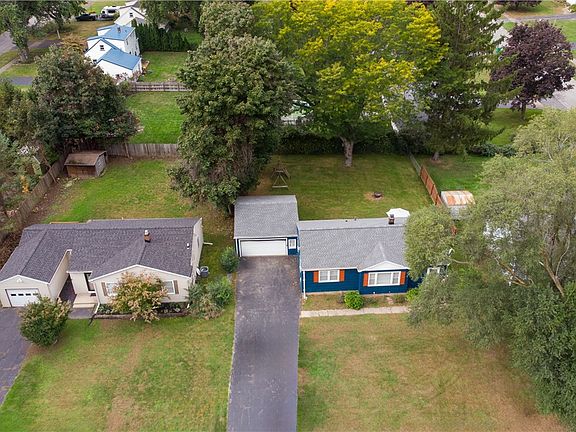 Right sized Greece ranch is ready for you to make it your own! 3 beds/1 bath and a fully fenced rear yard - a perfect home to start out in or downsize to! Nicely sized living room with hardwood flooring, and hardwoods are in bedrooms also! Updated bathroom! HVAC 2015, tear off roof within last few years, replacement windows throughout! Efficient kitchen area could be expanded into LR to add more work/cabinetry space! Sliding glass door in kitchen leads right to the rear patio & really lovely, private rear yard! Bsmt is spacious, has built in wet bar and is framed throughout so it's ready for you to make it impressive bonus space! Walk out directly into the 2 car garage-so convenient! ALL APPLIANCES WILL STAY-washer/dryer too! Dbl wide driveway, expansive garage w/screening for summer enjoyment, fenced rear yard includes good sized patio, a storage shed, a playset that STAYS, and a small pond feature that you may want to stock with koi fish! Come & make this one your own! Excellent area & close to everything! SIDEWALKS on this part of N Greece Road - so nice for walking/running! Very affordable & ready for your personal touches - delayed negotiations on Tuesday October 22nd at 4pm