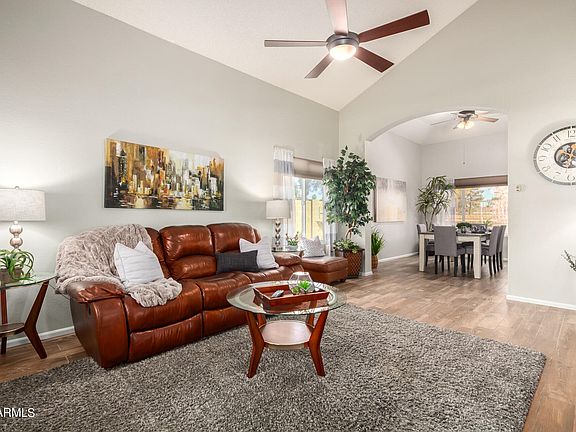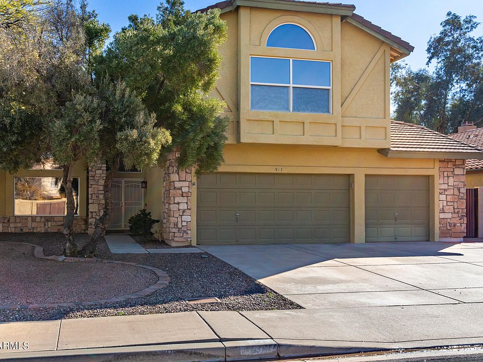 Indulge in golf course vistas from this exquisite two-story home in Crosspointe at Alta Mesa! The exterior boasts a 3-car garage and charming stone accents. Inside, discover wood-like and tile flooring, vaulted ceilings, an open living room with a formal dining room offering a picturesque view of the backyard. Unwind in the family room, complete with a cozy fireplace. The kitchen is a chef's delight with white cabinetry, solid surface counters, a travertine backsplash, built-in appliances, a breakfast bar, and a bay window in the breakfast nook. Retreat to the expansive primary suite featuring dual sinks, a stand-alone garden tub, and a walk-in closet. As a bonus, enjoy the flexibility of an additional room that can serve as a home theater, extra bedroom, office or golf simulator room. Complete set up for a golf simulation room is available upon request.