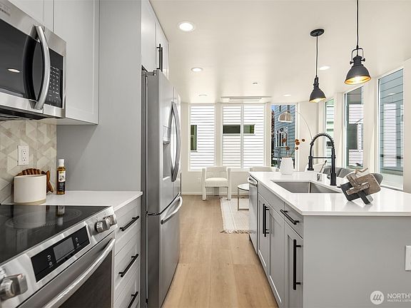 Modern Homes presents this new Ballard townhome community. This two-bedroom home boasts contemporary finishes & thoughtful design elements. Primary suite enjoys total privacy, occupying entire top floor. Expansive rooftop deck is a serene oasis perfect for hosting gatherings, cultivating a container garden, or simply basking in the sunshine. Experience abundant natural light with expansive windows. Situated moments from the heart of downtown Ballard: immerse yourself in the vibrant culture of the brewery district, the Ballard Farmer's Market & the Shilshole waterfront. Convenience meets luxury with nearby transit stops, ensuring effortless commuting.